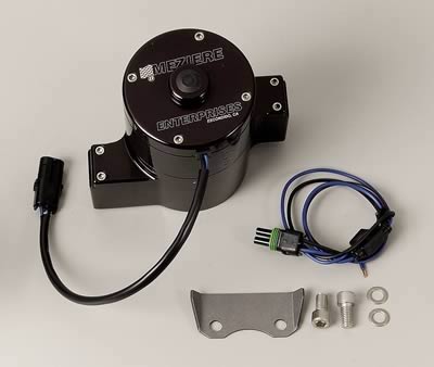 Meziere remote electric water pumps are designed to work on virtually any application. They can even be mounted on the back side of a V8 motor plate, which leaves all plumbing facing forward. They are concept-tested, street-proven, and track-ready.